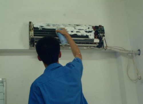 | 海兴空调维修师傅给海兴用户上门维修清洗空调。 |
